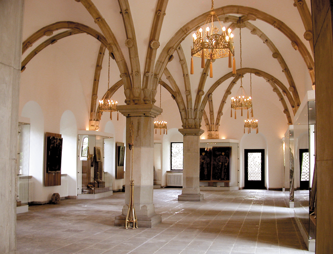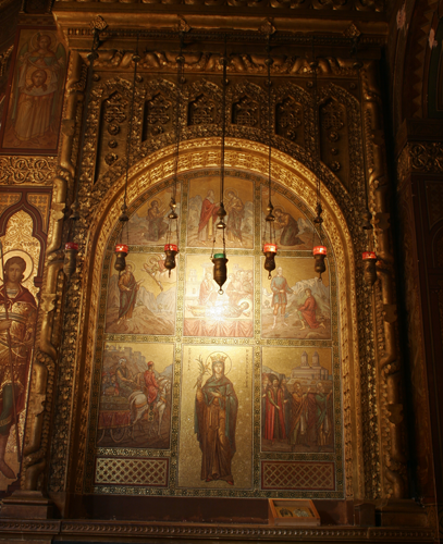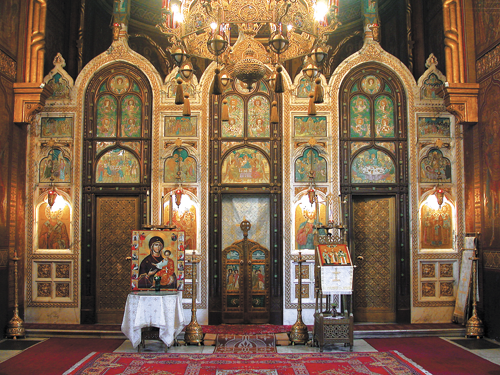 Majoritatea elementelor ambianţei interioare, lucrate între 1889-1890 la Viena şi Paris, au fost donate de regele Carol I şi regina Elisabeta. Scaunele domneşti şi arhiereşti, pupitrele etc. din bronz aurit cu inserţii de email şi fildeş înlocuiesc piesele de altădată sculptate în esenţe de lemn exotic la Istanbul. Tot din bronz aurit sunt şi candelabrele actuale, înfrumuseţate cu ouă de struţ şi care înlocuiesc pe cele precedente, din argint, dispărute înainte de restaurare.